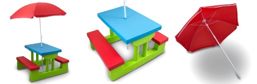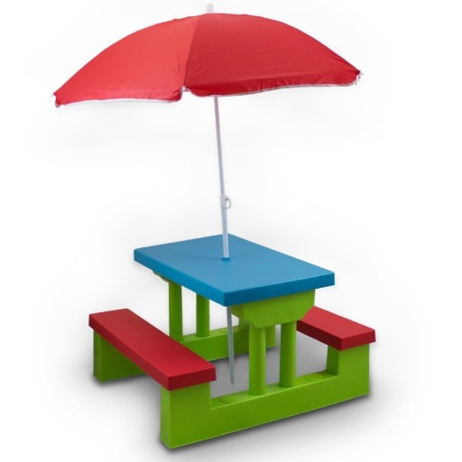 - 1x Stolik z ławeczkami dla dziecka z parasolem,