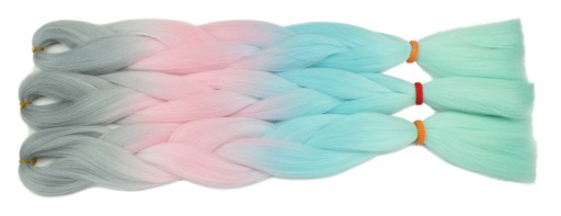 Włosy syntetyczne w przepięknym wariancie kolorystycznym -szaro-różowo-niebiesko-zielony. Wykonane z gładkiego i przyjemnego w dotyku henlonu.