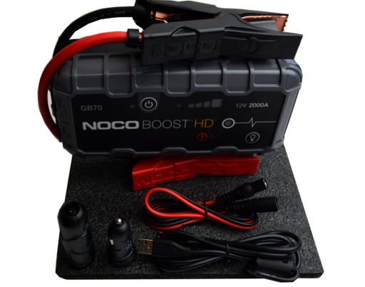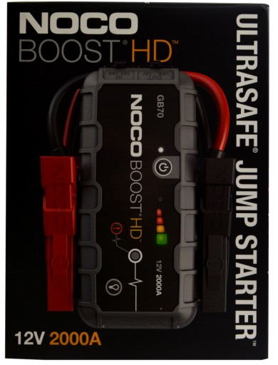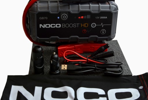 NOCO GB70 to urządzenie do awaryjnego rozruchu akumulatorów w samochodach osobowych, samochodach ciężarowych, samochodach dostawczych, łodziach, maszynach rolniczych, kosiarkach i innych pojazdach.