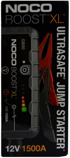 NOCO GB50 1500A to niezwykle bezpieczny, kompaktowy, wytrzymały i przenośny rozrusznik z wbudowaną 12-voltową baterią litowo-jonową. Cechuje się technologią odporną na iskrzenie oraz zabezpieczeniem przed odwrotną polaryzacją. Idealny do szerokiej gamy pojazdów, w tym małych samochodów z silnikiem Diesla, ciężarówek oraz silników do 7,0 litrowych benzynowych i 4,5 litra diesla.
