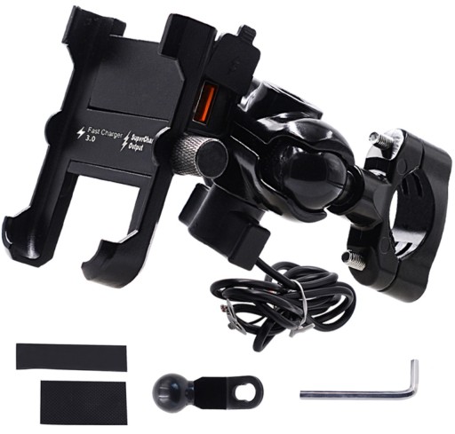 ДЕРЖАТЕЛЬ ДЛЯ МОТОТЕЛЕФОНА МЕТАЛЛИЧЕСКИЕ ТИСКИ ЗАРЯДНОЕ УСТРОЙСТВО 3.4A QC 3.0 USB