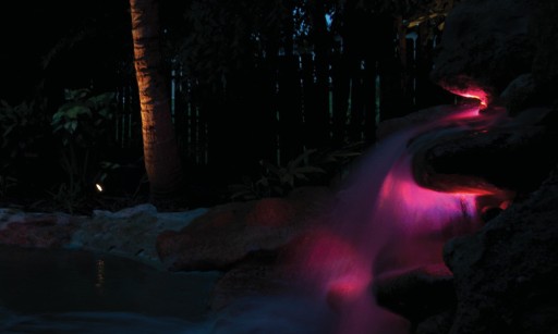 - Kolorowe oświetlenie do oczka wodnego lub ogrodu.