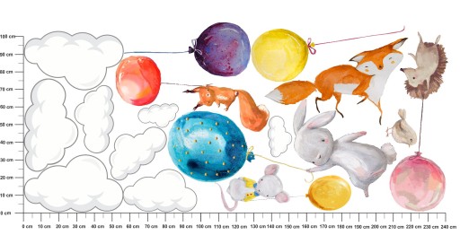 ЖИВОТНЫЕ КРОЛИКИ ШАРИКИ НАСТЕННЫЕ НАКЛЕЙКИ 240x100