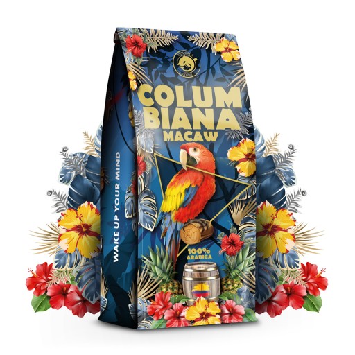 Columbiana Macaw - podróż smakiem między innymi do serca Kolumbii, gdzie natura i tradycja kawowa splatają się w wyjątkowy sposób. Każda torebka tej wyjątkowej kawy to ekspedycja do kolumbijskich plantacji, gdzie troskliwie wyselekcjonowane ziarna tworzą autentyczne arcydzieło.