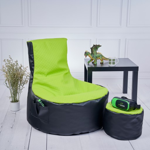 - Wytrzymały pikowany materiał na górnej części pufy i podnóżka