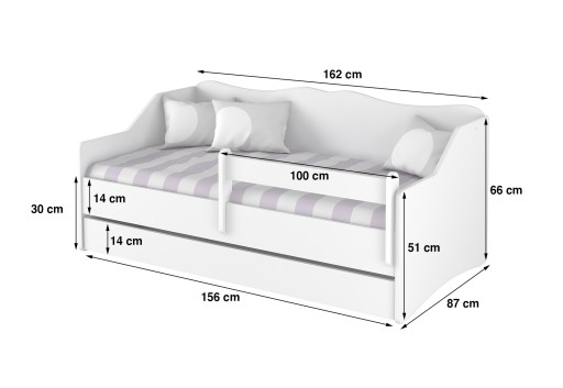 - wymiary zewnętrzne łóżka: 162 cm x 87 cm
