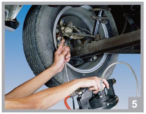Zestaw pozwala na jednoosobowe wykonanie napełnienia oraz odpowietrzania układu hamulcowego przy pomocy ciśnienia z instalacji pneumatycznej (kompresora).