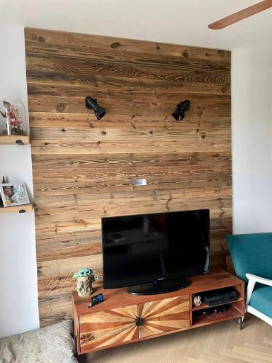 Naturalne drewno o takiej barwie pochodzi z południowych ścian domów i stodół. Niepowtarzalny kolor powstaje dzięki promieniom słońca, deszczowi i innym czynnikom atmosferycznym. Musi minąć wiele lat zanim drewno ujawni swoje głęboko skrywane barwy. Drewno pochodzi tylko i wyłącznie z odzysku, co znaczy, że kupując nasze produkty nie ścinacie kolejnych drzew.