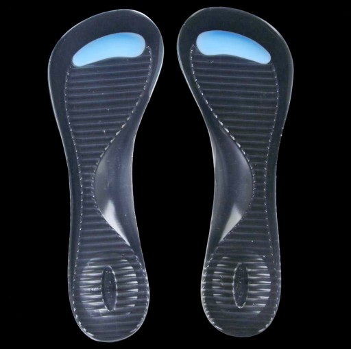 Żelowe wkładki przeznaczone do odkrytych butów na wysokim obcasie. Dzięki tym wkładkom chodzenie w sandałach i odkrytych butach na wysokim obcasie przestanie być uciążliwe i bolesne.