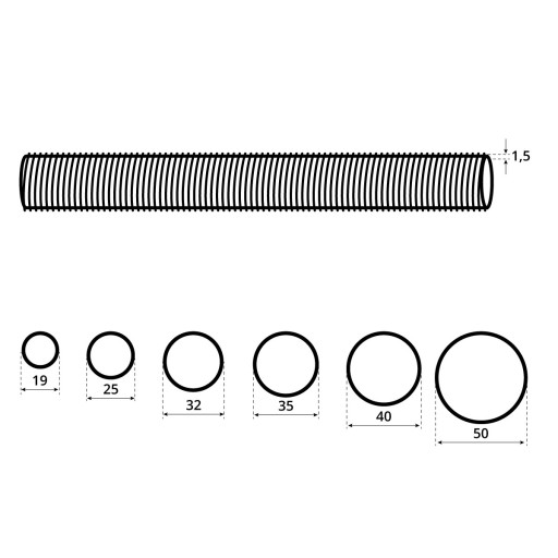 Zastosowanie: wąż ssawno-tłoczny doskonale sprawdzi się przy zasysaniu i przepływie powietrza, wody, pary wodnej, pyłu, kurzu, trocin. Idealnie nadaje się także do ochrony kabli.