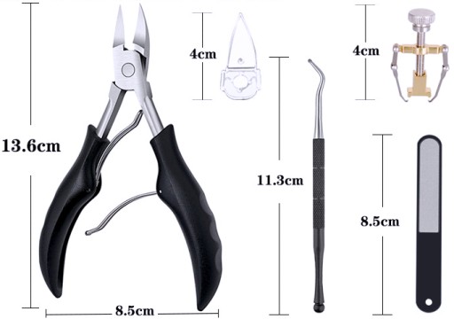 Idealny zestaw narzędzi do wrastających paznokci lub regularnej pielęgnacji stóp. Zestaw 7 sztuk różnych narzędzi do bezpiecznego i łatwego w użyciu. Idealny jako prezent, dzięki któremu można mieć zdrowe i piękne paznokcie.