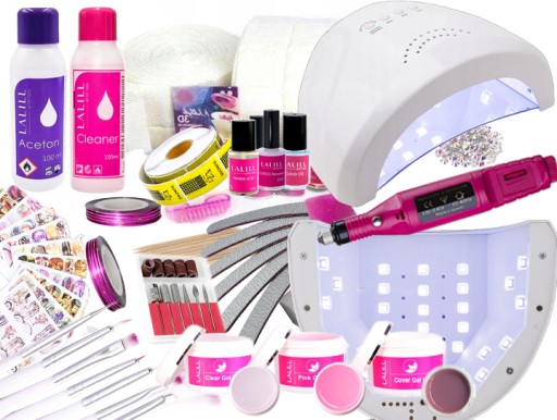 Lampa Uv/Led o mocy 48W + OGROMNY ZESTAW DO PAZNOKCI ŻELOWY HYBRYDOWY + Frezarka + Frezy + Kapturki
