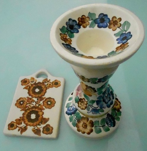 Fajans Włocławek Świecznik plus ceramiczna deseczka