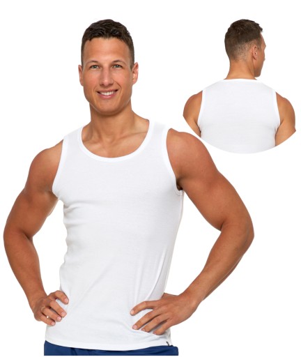 Podkoszulka męska typu tank top na ramiączkach z kolekcji BASIC to rodzaj koszulki, która jest wykonana z bawełny i ma odkryte ramiona. Bawełna jest naturalnym materiałem, który jest miękki i przyjemny w dotyku, a także trwały i odporny na zmechacenie. Podkoszulki typu tank top są popularne ze względu na ich wygodę i przewiewność, ponieważ bawełna jest materiałem, który dobrze odprowadza wilgoć. Są to idealne rozwiązania do noszenia pod koszulami lub bluzami, ze względu na ich lekkość i brak rękawów. Są one również ekologiczne ponieważ bawełna jest materiałem pochodzenia naturalnego.