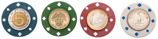 ✅Żetony są o nominale 1€, 5€, 10€ oraz 25€. Łącznie 1025 Euro.