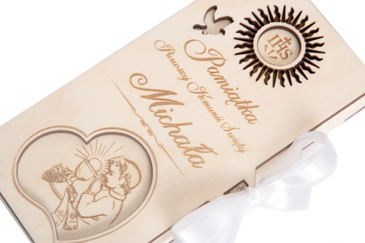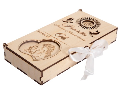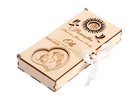 Pudełeczko z indywidualnym grawerem na pieniądze jako prezent na Pierwszą Komunię św