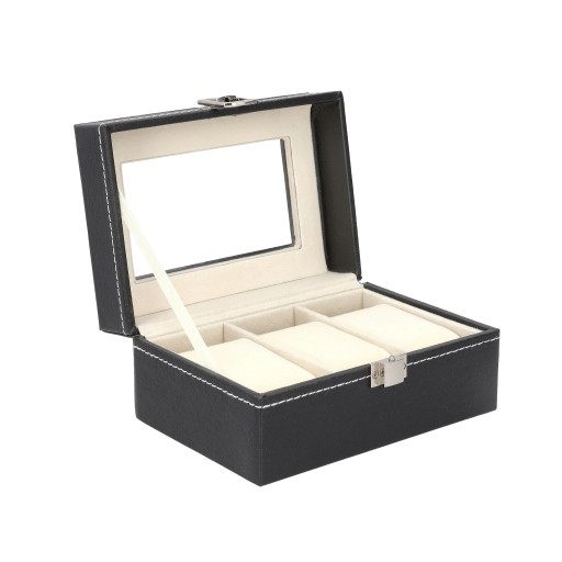 - Szklane okienko – Pozwala na szybki podgląd zawartości, jednocześnie chroniąc zegarki przed kurzem.