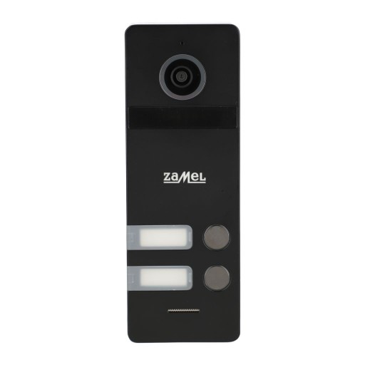 Dwurodzinny panel zewnętrzny domofonu wykonany ze stopu cynkowego przeznaczony jest do montażu natynkowego. Urządzenie wyposażone jest w podświetlanie IR.