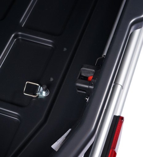 Wytrzymałe zawiasy zamontowane po obu stronach boxa przytrzymują górną pokrywę i ułatwiają załadunek.