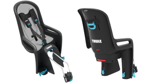 - Niemniej ważne jest to, że Thule RideAlong jest fotelikiem bardzo łatwym i wygodnym w użyciu również dla rodzica – wszystkich czynności regulacyjnych można dokonać jedną ręką (co jest ważne gdy drugą stabilizujemy rower), wszystkie materiały mogące się zabrudzić można łatwo zdementować do prania, a obejma montażowa wyposażona jest w zamek zabezpieczający przed kradzieżą.