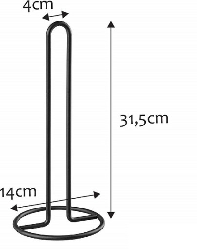 - Wysokość całkowita uchwytu to 31,5 cm, średnica podstawy wynosi 14 cm, przeznaczony do ręczników o minimalnej średnicy 40mm.
