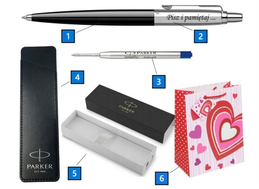 Ozdobna torebka prezentowa do każdego zamówionego Parkera.