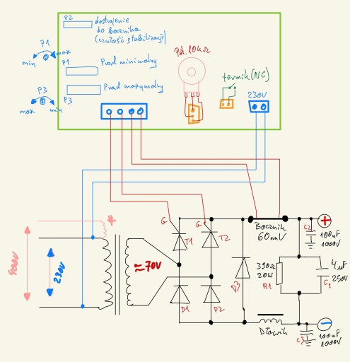 Przedmiotem oferty jest regulator tyrystorowy (układ sterujący - wyzwalający tyrystory). Umożliwia płynną regulację mocy /prądu przy użyciu tyrystorowego prostownika sterowanego (czyli dwie diody dwa tyrystory).