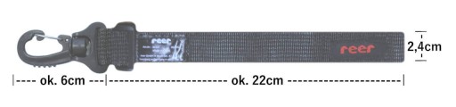 - Materiały: poliester (pasek) oraz tworzywo sztuczne (karabińczyk).