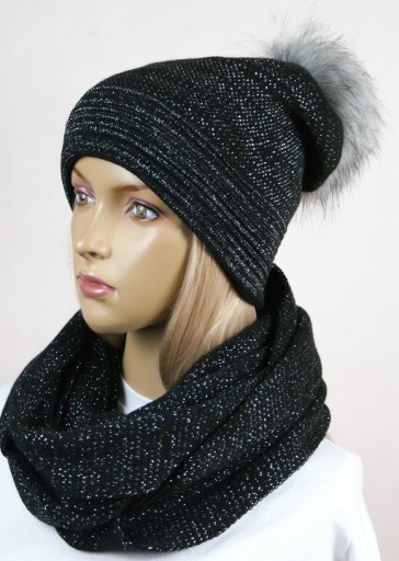KOMPLET CZAPKA + KOMIN SZAL pompon # 09