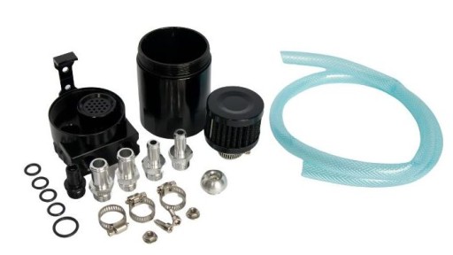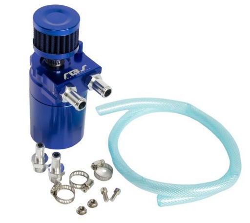 Uniwersalny zbiornik oleju na odmę (oil catch tank) firmy RBS Technology. Wykonany z najwyższej jakości aluminium. Ma za zadanie chronić silnik i podnosić jego parametry poprzez skraplanie oparów oleju, które przez odmę dostają się do dolotu i są następnie zasysane do komór spalania. Tworzą one nagar na przepustnicy i w kolektorze ssącym, co skutkuje zmniejszeniem mocy.