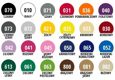 Standardowy kolor to czarny, a standardowy font to nr 119,