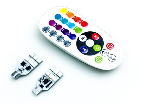 ŻARÓWKI RGB T10 W5W POSTOJOWE WNĘTRZA+PILOT