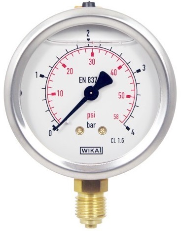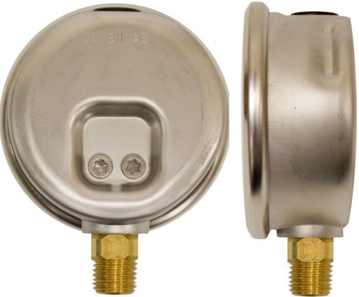 Manometr hydrauliczny z rurką Bourdona z płynnym wypełnieniem posiada solidną i wytrzymałą obudowę ze stali nierdzewnej oraz części zwilżane ze stopu miedzi. Spełnia wymagania międzynarodowej normy przemysłowej EN 837-1 dla manometrów z rurką Bourdona.