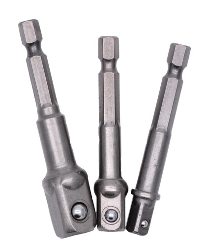 Zestaw 3 specjalistycznych redukcji, adapterów do wkrętarki. Umożliwiają pracę wkrętarką z nasadkami. Elementy zestawu wykonane są ze stali narzędziowej, która zapewnia ich wysoką wytrzymałość i długą żywotność. Świetnie sprawdzają się w wiertarko-wkrętarkach sieciowych i akumulatorowych.