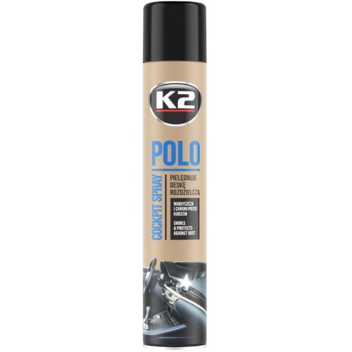 K2 POLO COCKPIT to spray do pielęgnacji i konserwacji deski rozdzielczej. Zawiera specjalne nanocząsteczki, dzięki którym w łatwy i szybki sposób zabezpieczy cały kokpit, przywróci głęboką barwę oraz wyrazistą fakturę czyszczonych elementów.