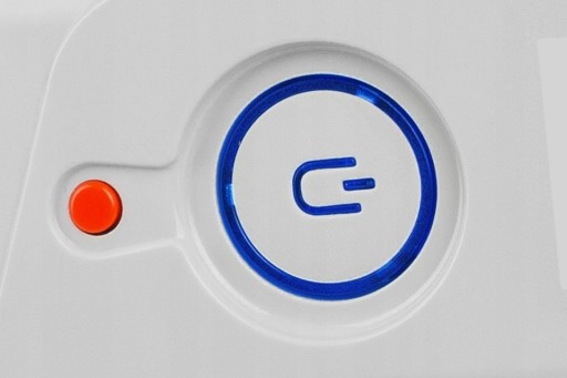 Zintegrowany przycisk daje delikatną pomarańczową poświatę, informując użytkownika o obecności napięcia.