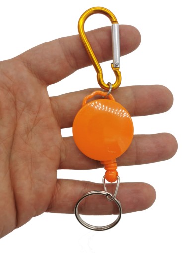 Brelok - retraktor w formie karabińczyka wraz z kółeczkiem, który można doczepić do kluczy, identyfikatora, wizytówki czy długopisu. Praktyczny retraktor przyda się do trzymania drobnych rzeczy blisko siebie. Zwijak posiada kółeczko do kluczy oraz metalowy karabińczyk, który możesz zamocować do spodni, plecaka, torebki itp. Nigdy już nie zgubisz swoich kluczy, długopisu lub identyfikatora.