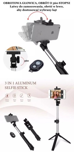 Kijek selfik możemy zamienić na statyw, ma trzy rozkładane nóżki dzięki temu można robić zdjęcia z dalszej odległości bez konieczności trzymania go w dłoni co zwiększa stabilność, poprawiając jakość naszych zdjęcia. Dzięki temu że uchwyt posiada regulacje długości od 18 do 75 cm i obrotowy koszyk o 360 stopni, można dobrze ustawić telefon w idealnej pozycji.