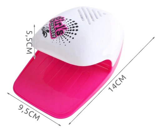 By czas oczekiwania na wyschnięcie paznokci nie był zbyt długi, pomalowane paznokcie należy umieścić w specjalnej, dołączonej do zestawu suszarce, znacznie przyśpieszającej proces schnięcia