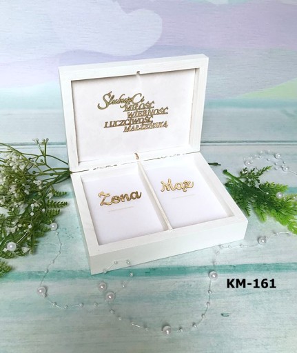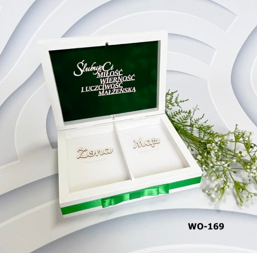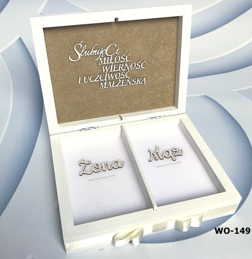 Pudełko na obrączkI wykonane z drewna , malowane na biało