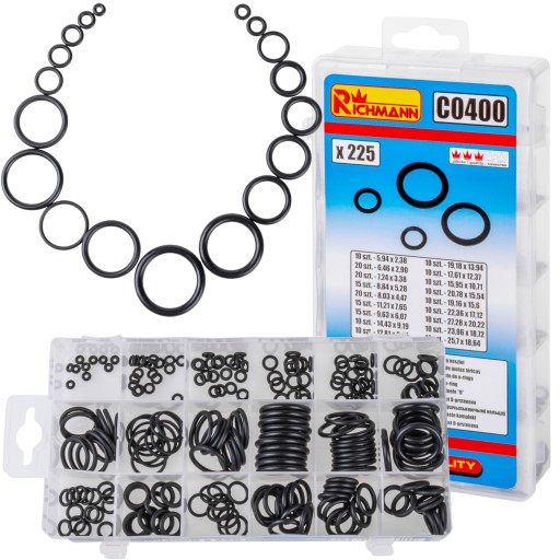 НАБОР УПЛОТНИТЕЛЬНЫХ КОЛЬЦЕВ 225 ШТ. РАЗЛИЧНЫХ ТИПОВ RICHMANN C0400