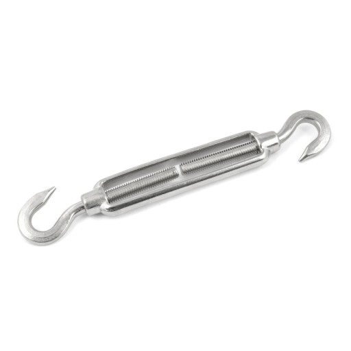 Śruba jest zakończona z obu stron hakami, które można zaczepiać o inny osprzęt np. szekle, karabińczyki, ogniwa czy też w śruby lub nakrętki z uchem.