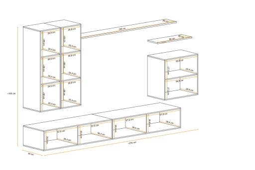 Wymiary całkowite (S/W/G): ~270cm / ~160cm / 40 cm