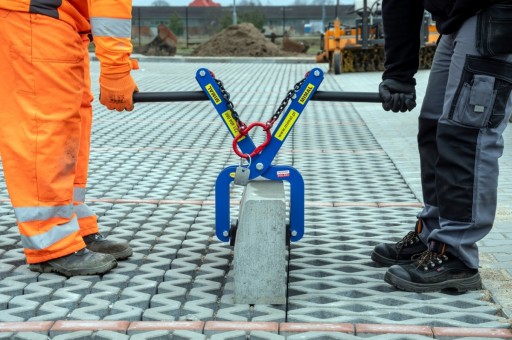Służy do przenoszenia i ustawiania krawężników oraz innych elementów betonowych o wadze do 150 kg. Duże szczęki z wkładkami gumowymi zapewniają pewny i mocny uchwyt przenoszonych elementów. Łańcuch zamocowany na chwytaku umożliwia montaż na większości maszyn z funkcją podnoszenia. Chwytak wyposażony jest w atestowane zawiesie.