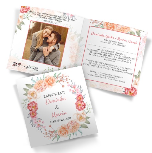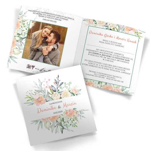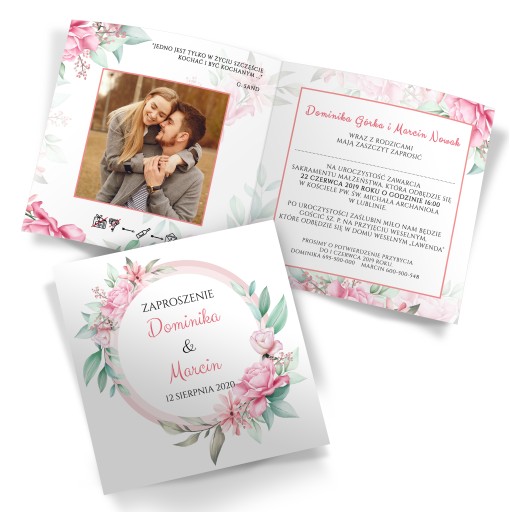 Każdy wzór posiada DOPASOWANE DO FRONTU zaproszenia wnętrze.