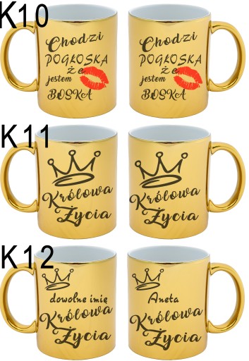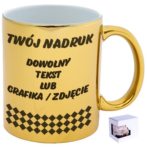 Złoty błyszczący kubek z dowolnym nadrukiem.