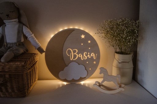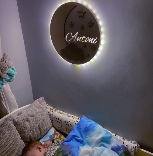 Personalizowana drewniana lampka Led z imieniem Twojego Maluszka lub z dowolnym napisem.