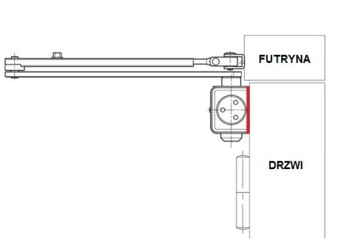 - Regulowana siła zamykania EN 2/3/4/5 poprzez przestawny montaż samozamykacza względem zawiasów
