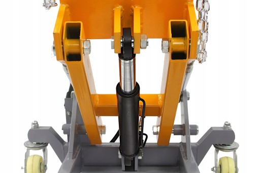 Podłogowy podnośnik do skrzyni biegów BJC został wyposażony w dwukierunkowy siłownik i oddzielną pompę z mechanizmem który umożliwia precyzyjne i powolne opuszczanie ładunku ( uniemożliwiając swobodne , niekontrolowane opadanie )