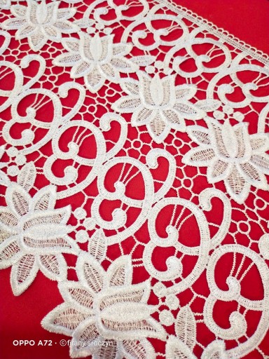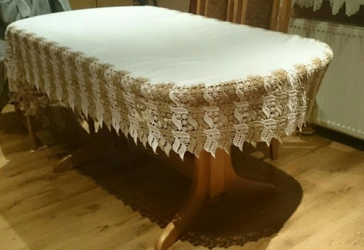 Przedstawiamy przykładową realizację zlecenia naszej klientki z gipiurą w kolorze. Realizacja obejmowała firankę po łuku i obrus na stół do kompletu :)
